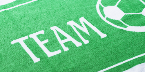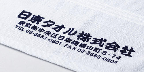 社名やロゴマーク、メッセージなどをタオルの平地に印刷します。自社工場で印刷・加工ができるので、スピーディーに対応可能です。一番オーソドックスな名入れ方法です。