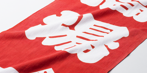 手拭いの本染と同じようにタオルを染めていく手法。裏面は、表面が反転した白抜きのデザイン。タオルそのものを染めているので、吸水性や耐水性に優れています。大柄の意匠向きです。