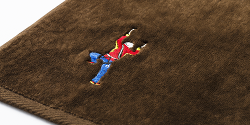 社名やロゴマークはもちろんお子様が描いたイラストなど、多様な図柄を刺繍で表現できます。自社工場で刺繍ができるので、スピーディーに対応可能です。刺繍のサイズや色数、タオルの種類もご相談ください。
